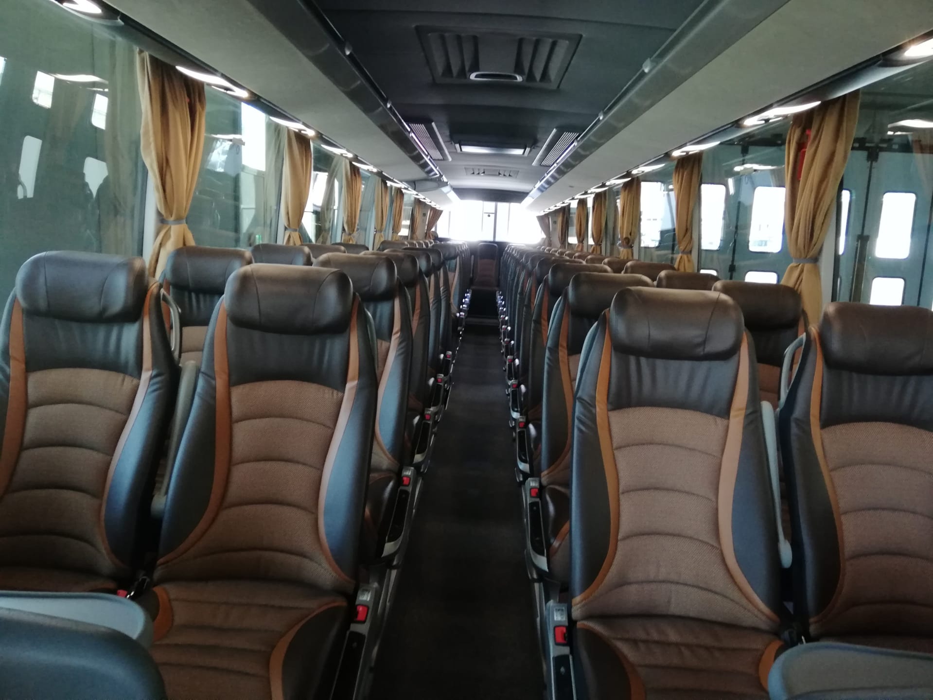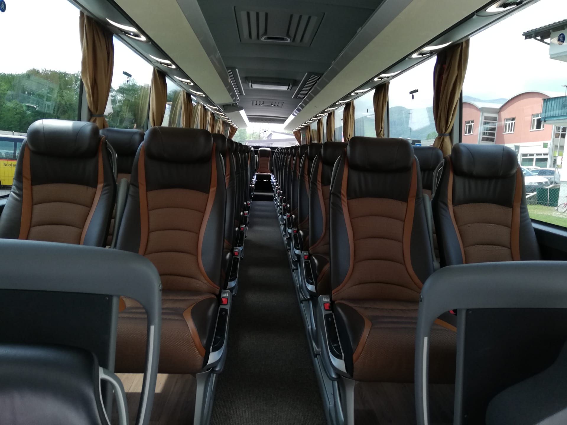 Dotazione: Cruise control, navigatore GPRS, TV – DVD 19 pollici, microfono, climatizzatore elettronico, sedili reclinabili, poggiatesta in pelle, poggiapiedi regolabili, tavolini con porta bicchieri, frigobar, toilette, bagagliaio capiente.